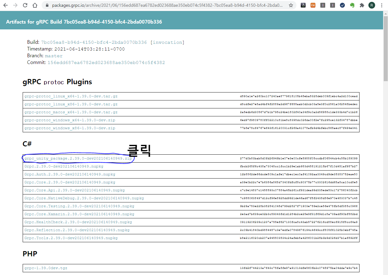 C#에서 grpc_unity_package...~...zip 다운로드.