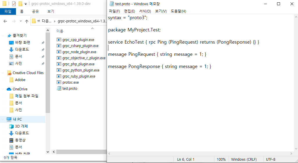 1-3. 압축 해제한 grpc-protoc 파일은 .proto 파일을 컴파일할 때 계속 사용하게 되므로 적당한 곳에 압축을 풀어 보관.