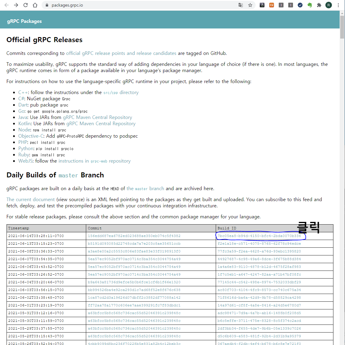 최신 버전의 Build ID를 클릭 .